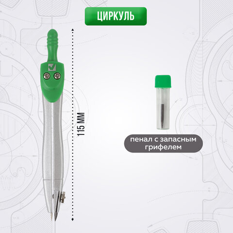 Готовальня BRAUBERG "Klasse", 2 предмета: циркуль 115 мм, пенал с грифелем, блистер, 210318
