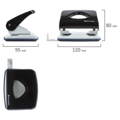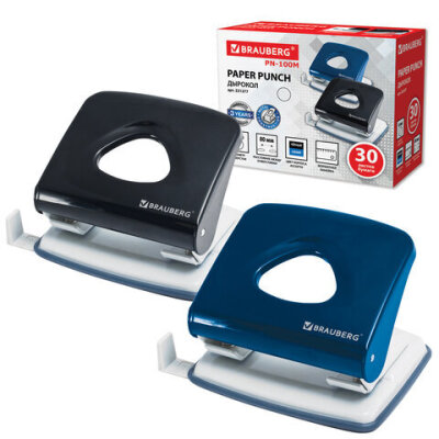 Дырокол металлический BRAUBERG "PN-100M", до 30 листов, ассорти (синий/черный), 221277