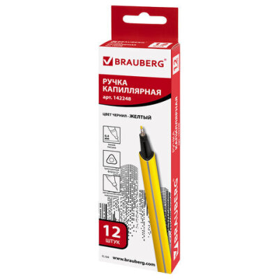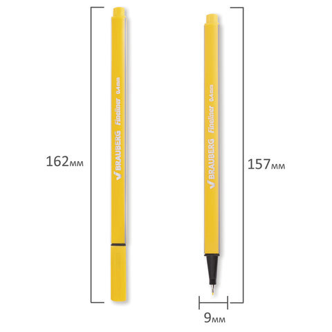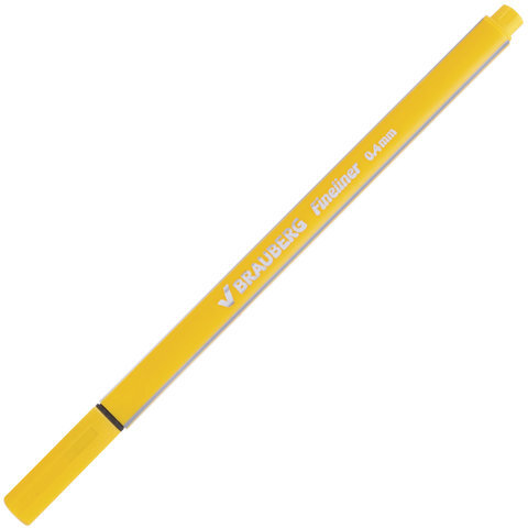 Ручка капиллярная (линер) BRAUBERG "Aero", ЖЕЛТАЯ, трехгранная, металлический наконечник, линия письма 0,4 мм, 142248