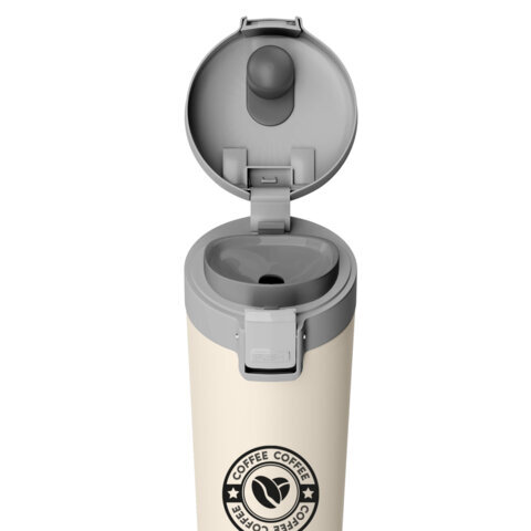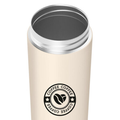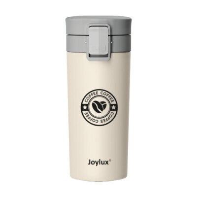 Термокружка 380 мл JOYLUX (ДЖОЙЛЮКС) CLASSIC COFFEE, нержавеющая сталь SUS304, бежевый с принтом, 700273