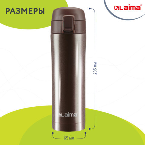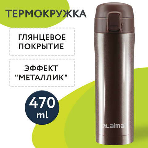 Термокружка 470 мл из нержавеющей стали SUS304, шоколадно-коричневый металлик, LAIMA, 608819