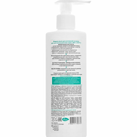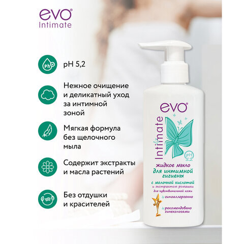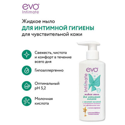 Мыло-крем жидкое для интимной гигиены гипоаллергенное для чувствительной кожи 200 мл, EVO Intimate, 1437