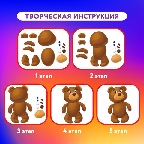 Пластилин ЮНЛАНДИЯ предназначен для лепки дома и на уроках труда. Занятия с классическим пластилином способствуют развитию воображения и мелкой моторики рук ребенка. Творческая инструкция по лепке представлена на обороте.