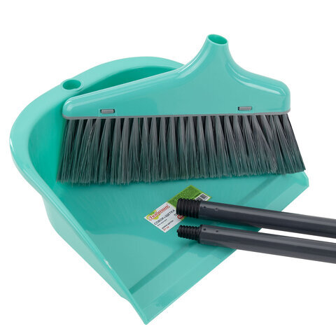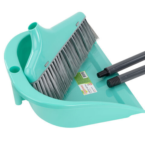 Совок для мусора КОМПЛЕКТ щетка + 2 рукоятки 80 см и 87 см с резьбой, пластиковые, "ЛЕНИВКА", бирюзовый, ЛЮБАША, 700056