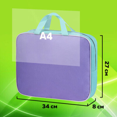 Папка на молнии с ручками STAFF EVERYDAY А4, 1 отделение, полиэстер, 80 мм, лавандовая, 271487