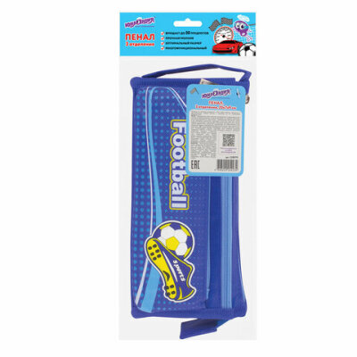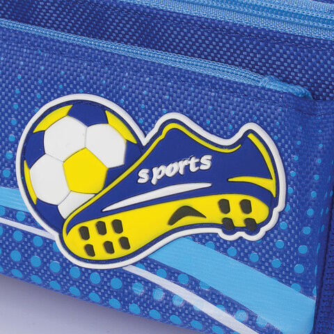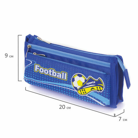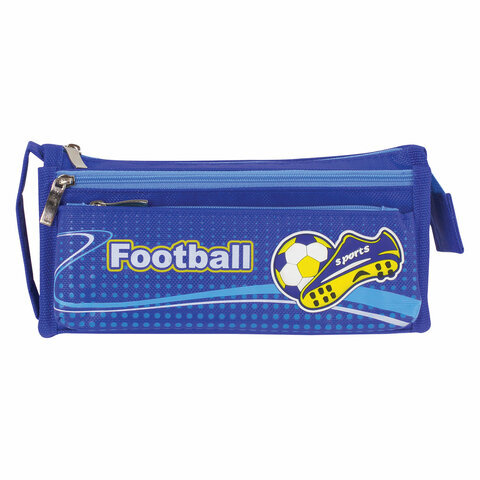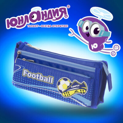 Пенал ЮНЛАНДИЯ для мальчиков, 3 отделения, мягкий, "Футбол", синий, 20х7х9 см, 228979
