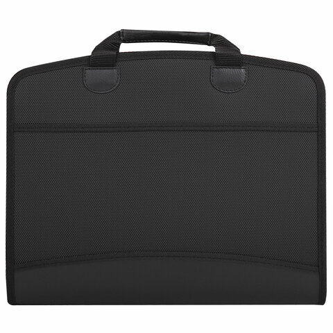 Папка-портфель пластиковая BRAUBERG А4+ (375х305х60 мм), 4 отделения, 2 кармана, на молнии, черный, 225169