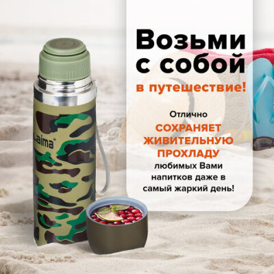 Термос LAIMA с узким горлом, 0,5 л, нержавеющая сталь, хаки, 601409