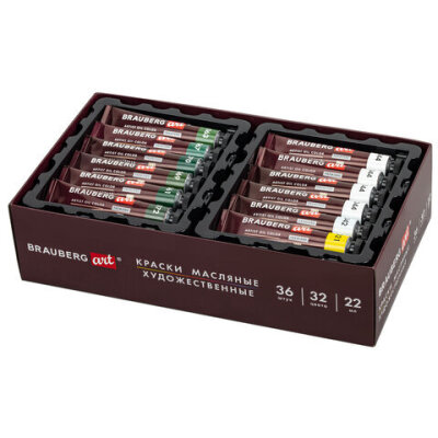 Краски масляные художественные НАБОР "PREMIERE 36 штук 32 цвета!", в тубах 22 мл, BRAUBERG ART, 192009