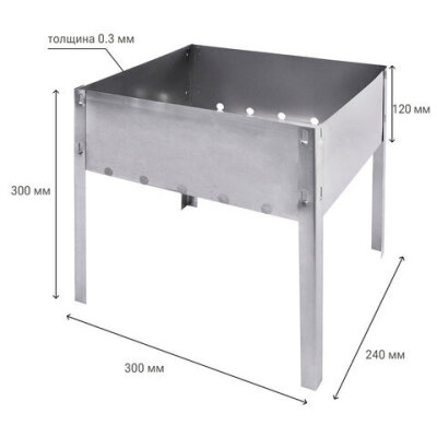 Мангал сборный стальной, размер 300х240х300 мм, в пленке, 701722