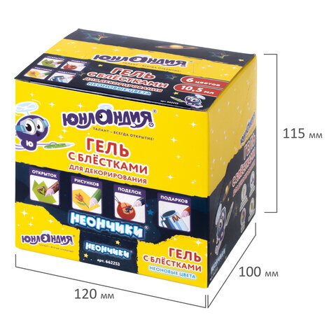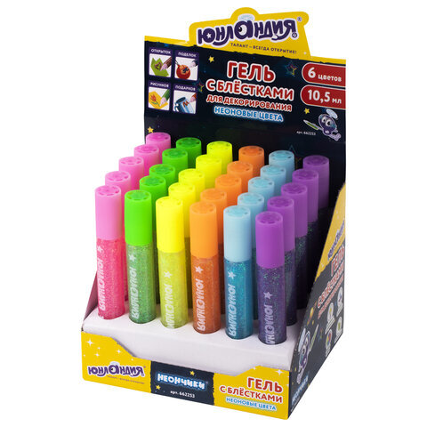 Гель с блестками ЮНЛАНДИЯ "НЕОНЧИКИ", для декора, поделок, DIY, творчества, оформления, 10,5 мл, цвета ассорти, в дисплее, 662253