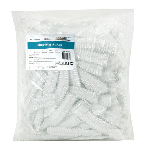 Шапочка для душа одноразовая, КОМПЛЕКТ 100 шт., прозрачный полиэтилен, ЧИСТОВЬЕ, 00-210