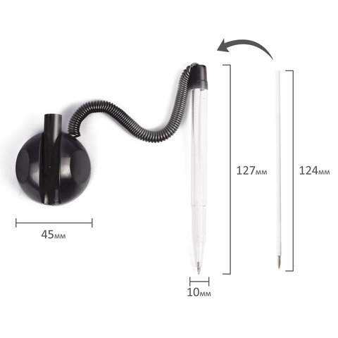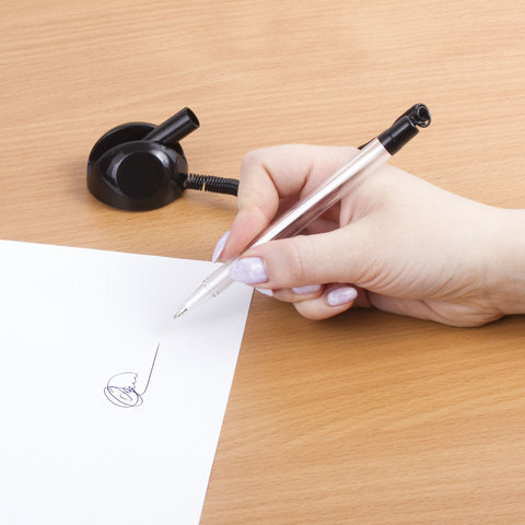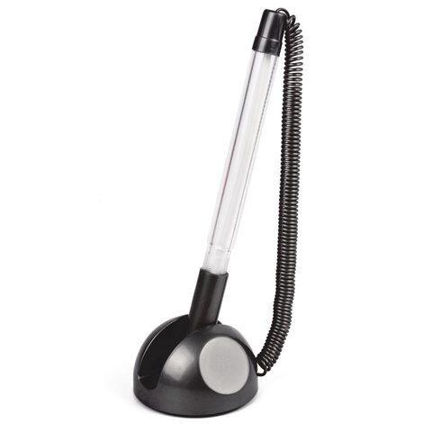 Ручка шариковая настольная BRAUBERG "Стенд-Пен", СИНЯЯ, пружинка, корпус черный, линия письма 0,5 мм, 141351