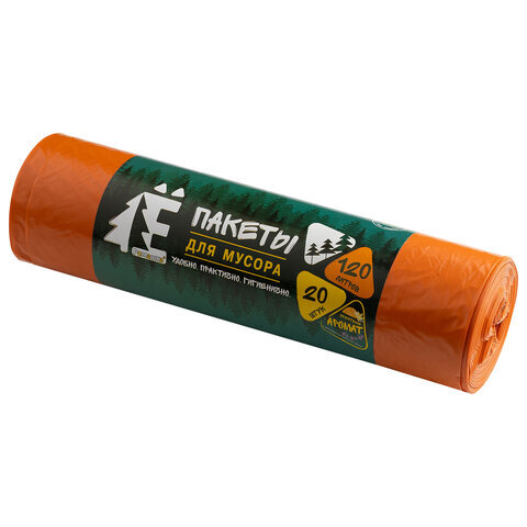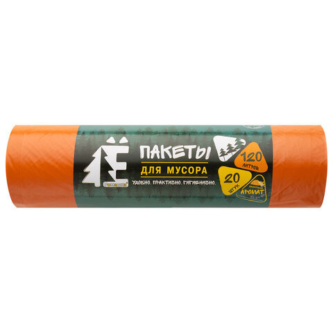 Мешки для раздельного сбора мусора 120 л, оранжевые, в рулоне 20 шт., ПВД 20 мкм, 70х110 см, РОМАШКА, ЕЛР-ВР-120О