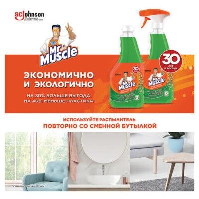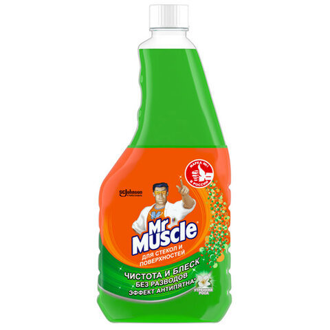 Средство для мытья стекол и зеркал (сменный флакон) 530 мл, МИСТЕР МУСКУЛ "Утренняя роса"