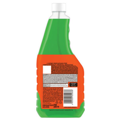 Сменный флакон средства для мытья стекол. Содержит нашатырный спирт, эффективно удаляющий грязь, жир, минеральные масла.
