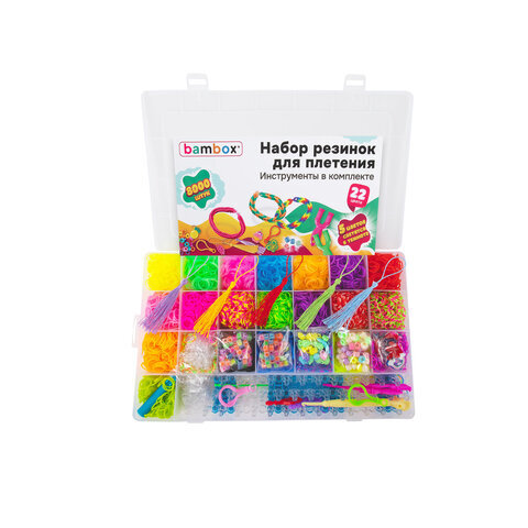 Набор резинок для плетения украшений 8 000 шт., 22 цвета, бокс, бусины, станок, BAMBOX (БАМБОКС), 665975