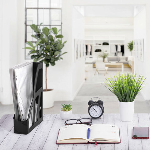 Вертикальный лоток для бумаг BRAUBERG для хранения документов позволит поддержать порядок на рабочем месте и сэкономит пространство на столе и в шкафу.