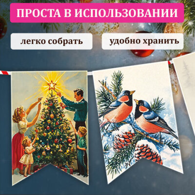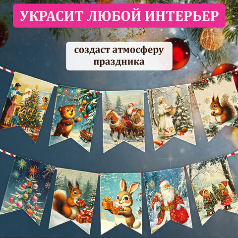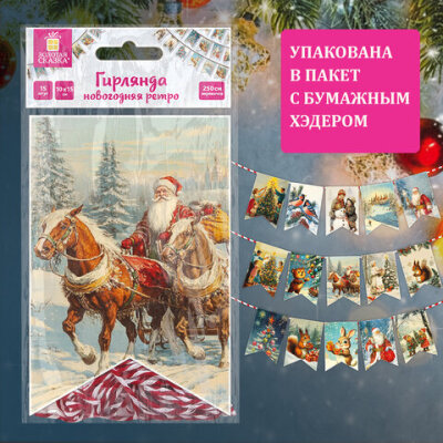 Гирлянда-растяжка новогодняя ЗОЛОТАЯ СКАЗКА с ретро-иллюстрациями создаст атмосферу доброго и по-домашнему уютного праздника. Это не просто бумажная гирлянда – это маленькая частица зимней сказки, которую можно повесить на стену.