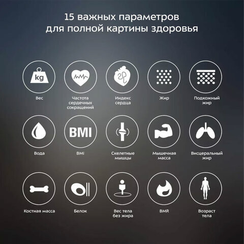 | Измерения | определение доли воды, определение доли жировой ткани, определение доли костной ткани, определение доли мышечной ткани, расчет ИМТ (BMI) |