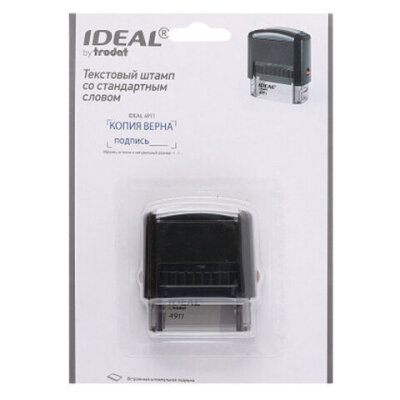 Штамп TRODAT IDEAL 4911 DB с готовым оттиском. Изготовлен на основе оснастки серии Printy 3.0., обеспечивает равномерное укрытие оттиска на бумаге. Прозрачное основание обеспечивает точное позиционирование оттиска