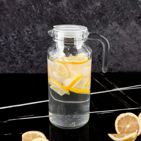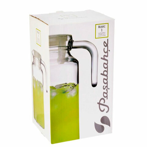 Кувшин прозрачный с крышкой, объем 1300 мл, стекло, PASABAHCE "БЕЙЗИК", фирменная подарочная упаковка, 43964