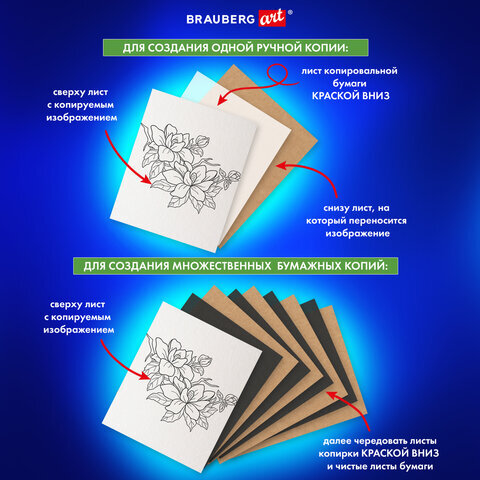 Копировальная бумага BRAUBERG ART "CLASSIC" предназначена для письма вручную, хобби и творчества.