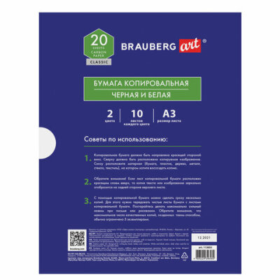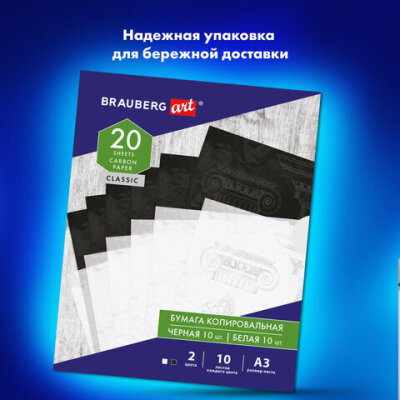 Бумага копировальная (копирка) А3, 2 цвета по 10 листов (черная, белая), BRAUBERG ART, 113855