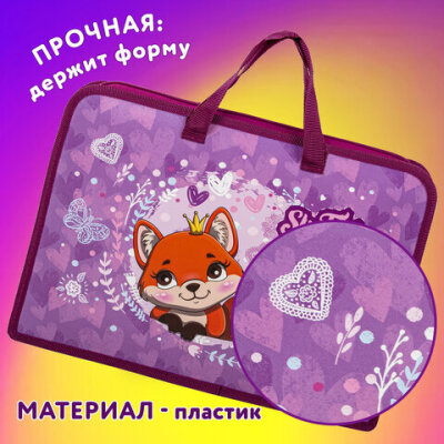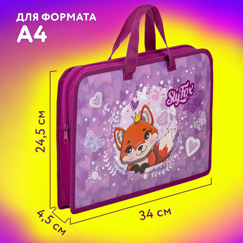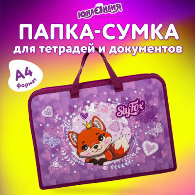 Папка на молнии с ручками ЮНЛАНДИЯ А4, 1 отделение, пластик, ширина 45 мм, "Sly fox", 270945