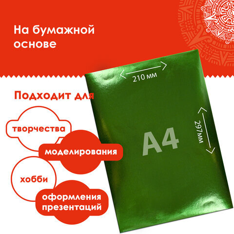 Цветная фольга А4 АЛЮМИНИЕВАЯ НА БУМАЖНОЙ ОСНОВЕ, 10 листов 10 цветов, ОСТРОВ СОКРОВИЩ, 210х297 мм, 111960