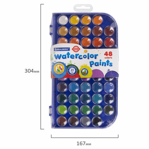 Краски акварельные BRAUBERG "PREMIUM" 48 цветов, круглые кюветы 23 мм, пенал, 191747