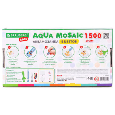 • Аквамозаика BRAUBERG KIDS - это набор специальных бусин для создания картинок на трафаретах, входящих в набор. Бусины склеиваются между собой, если побрызгать на них обычной водой. Аквамозаика развивает у ребёнка усидчивость и креативное мышление.
