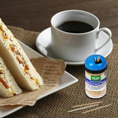 Прочные бамбуковые зубочистки WELDAY в диспенсере являются отличным выбором для заведений общественного питания.