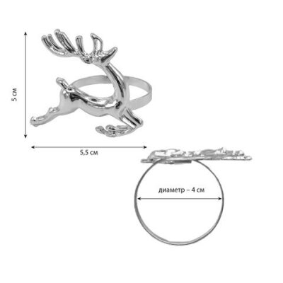Кольца для салфеток новогодние, КОМПЛЕКТ 6 шт., 5,5 см, "Олени", серебристые, ЗОЛОТАЯ СКАЗКА, 592488