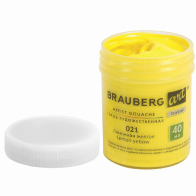 Гуашь художественная 1 шт., BRAUBERG ART CLASSIC, баночка 40 мл, ЛИМОННАЯ ЖЕЛТАЯ, 191571