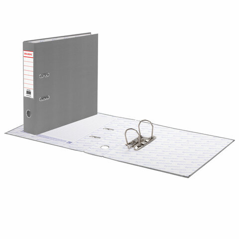 Папка-регистратор BRAUBERG с покрытием из ПВХ, 70 мм, серая (удвоенный срок службы), 221819