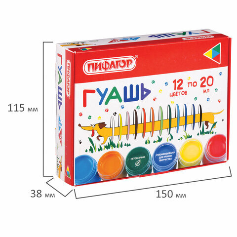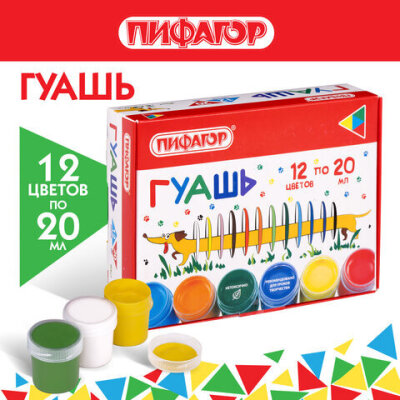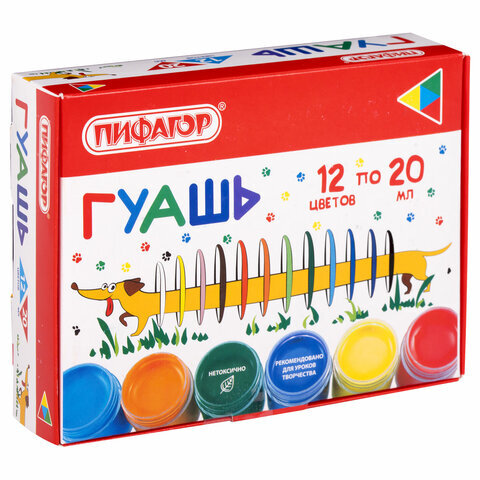 Гуашь ПИФАГОР "ВЕСЕЛАЯ ТАКСА", 12 цветов по 20 мл, 192379