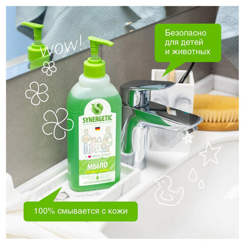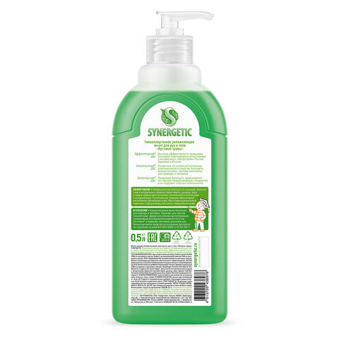 Мыло жидкое 500 мл SYNERGETIC "Луговые травы", гипоаллергенное, биоразлагаемое, дозатор, 105053
