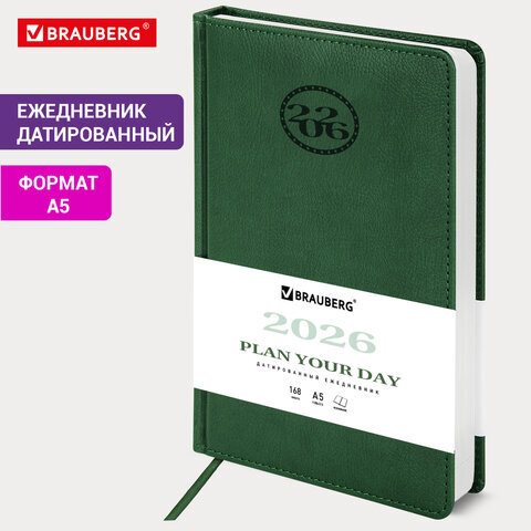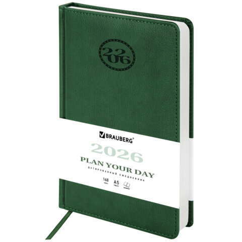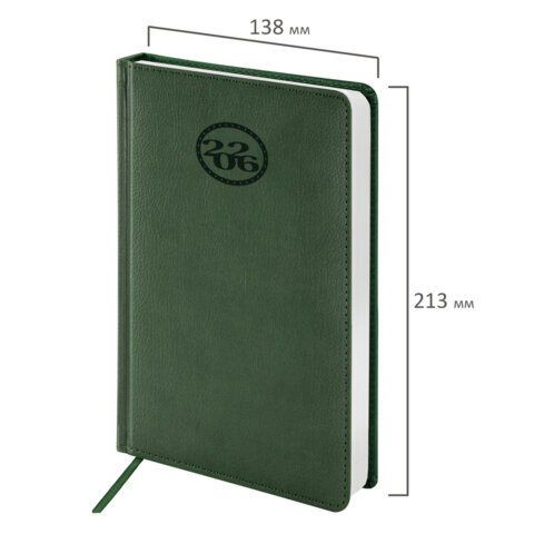 Ежедневник датированный 2026, А5, 138x213 мм, BRAUBERG "Favorite", под кожу, зеленый, 117038