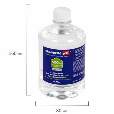 Разбавитель для масляных красок слабопахнущий, в бутылке, 600 мл, BRAUBERG ART CLASSIC, 192427