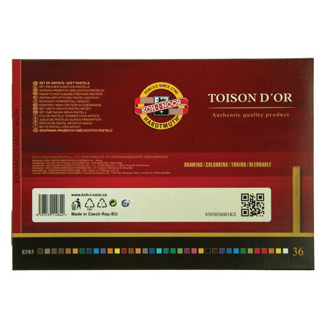 Пастель мягкая художественная KOH-I-NOOR "Toison D'or", 36 цвета, квадратное сечение, 8585036001KS