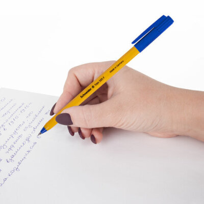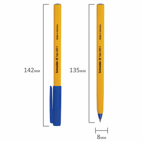 Ручка шариковая SCHNEIDER (Германия) "Tops 505 F", СИНЯЯ, корпус желтый, узел 0,8 мм, линия письма 0,4 мм, 150503
