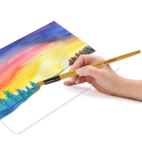Кисть ПИФАГОР № 9 подходит для работы с акварелью, гуашью, тушью, акрилом, а также для прорисовывания различных деталей рисунка. Снабжена защитным пластиковым колпачком.