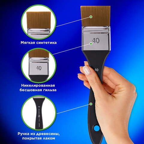 Кисть художественная профессиональная, синтетика, флейц, № 40, BRAUBERG ART CLASSIC, 201036