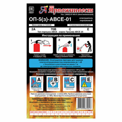 | Масса огнетушащего вещества | 5 кг |