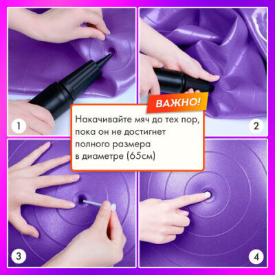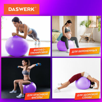 Мяч гимнастический (фитбол) 65 см с эффектом "антивзрыв", с ручным насосом, фиолетовый, DASWERK (ДАСВЕРК), 680017