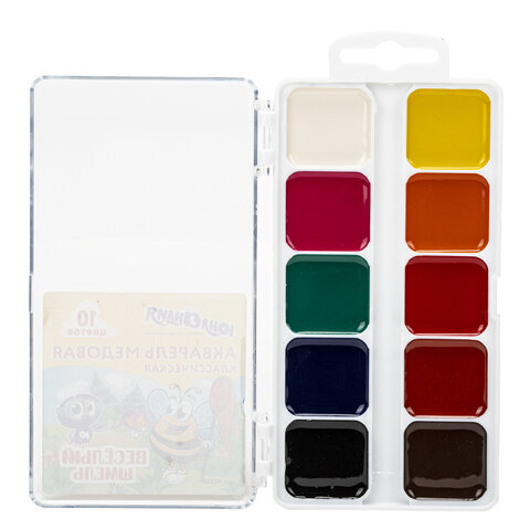 Краски акварельные ЮНЛАНДИЯ "ВЕСЁЛЫЙ ШМЕЛЬ", медовые, 10 цветов, КЛАССИЧЕСКИЕ, пластик, 191323