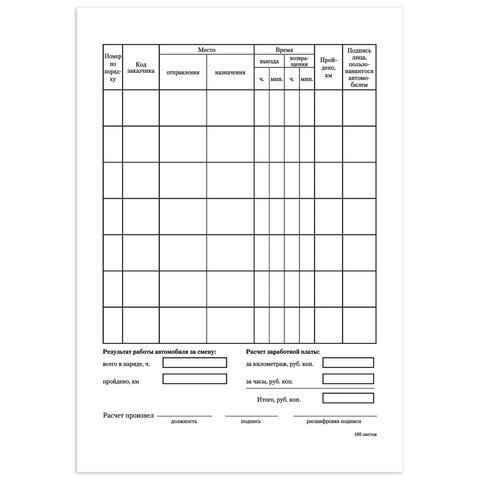 Бланк бухгалтерский, офсет, "Путевой лист легкового автомобиля", А5 (135х195 мм), СПАЙКА 100 шт., STAFF, 130133