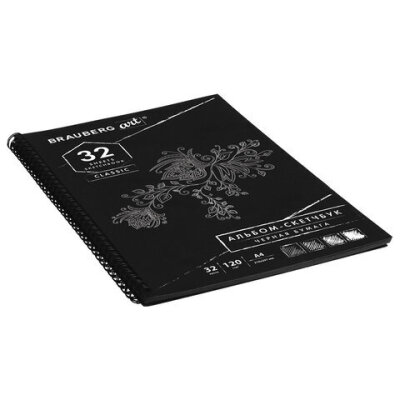 Скетчбук, черная бумага 120 г/м2, 210х297 мм, 32 л., гребень, BRAUBERG ART CLASSIC, 128951