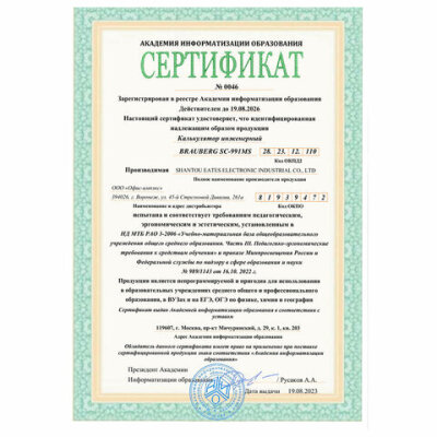 | Сертифицирован для ЕГЭ | да |